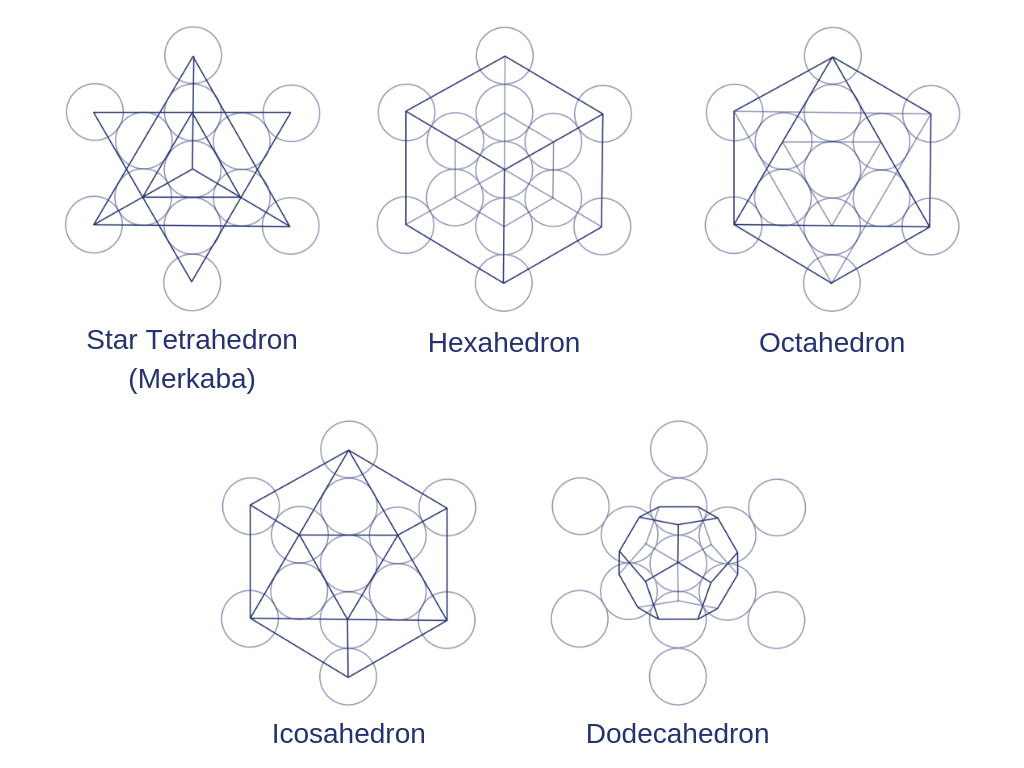 Metatron’s Cube contains the 5 platonic solids associated with the 5 elements. Together they created the structure of our Universe.