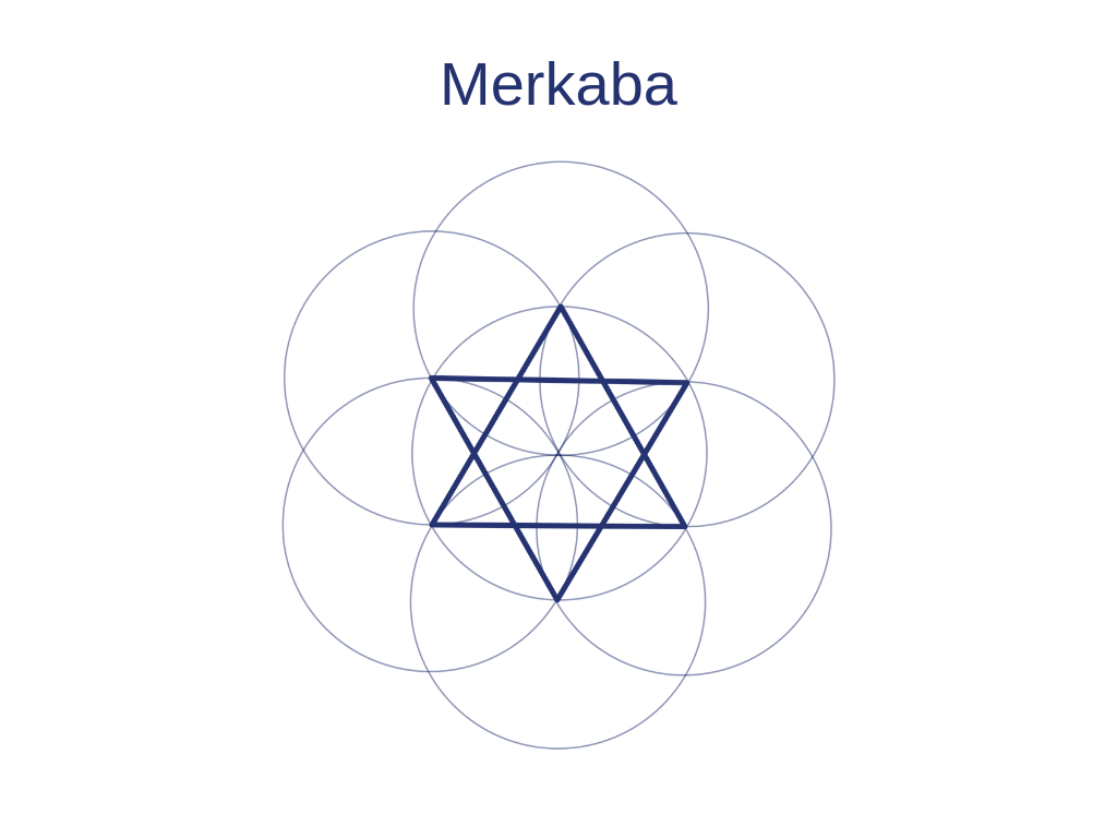 When we connect the intersection points around the inner circle, we can draw a Merkaba. It illustrates the connection between Spirit and form.